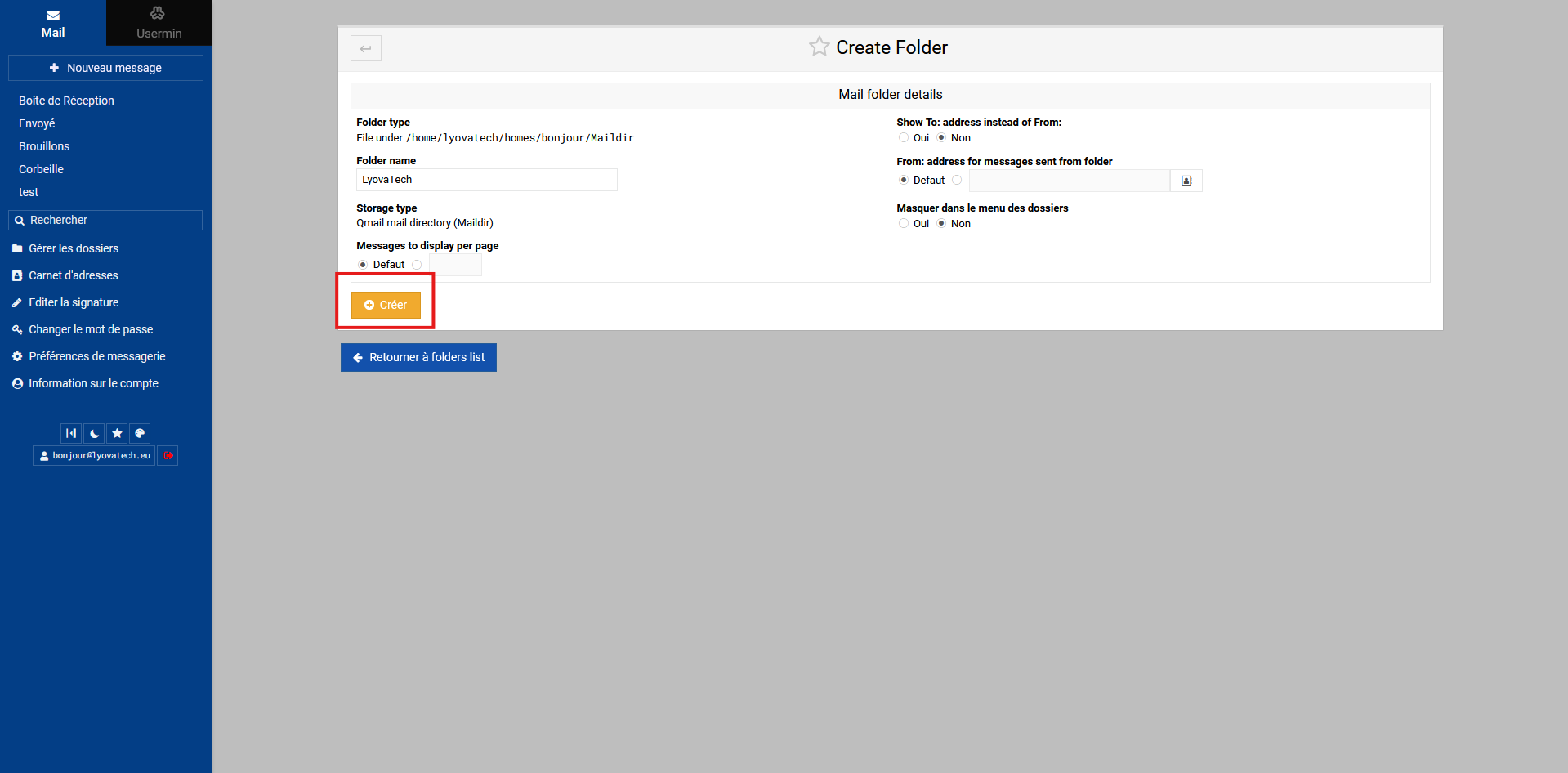 Afin de créer un sous-dossier, dans le champ "Folder name" :