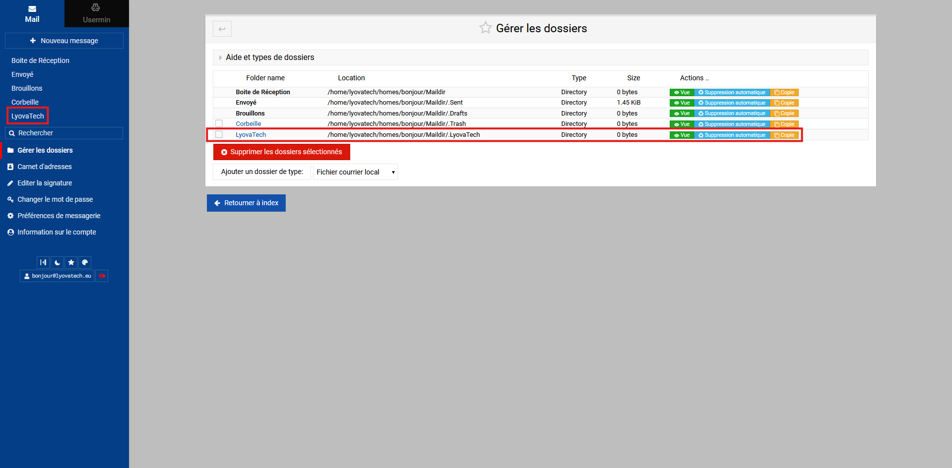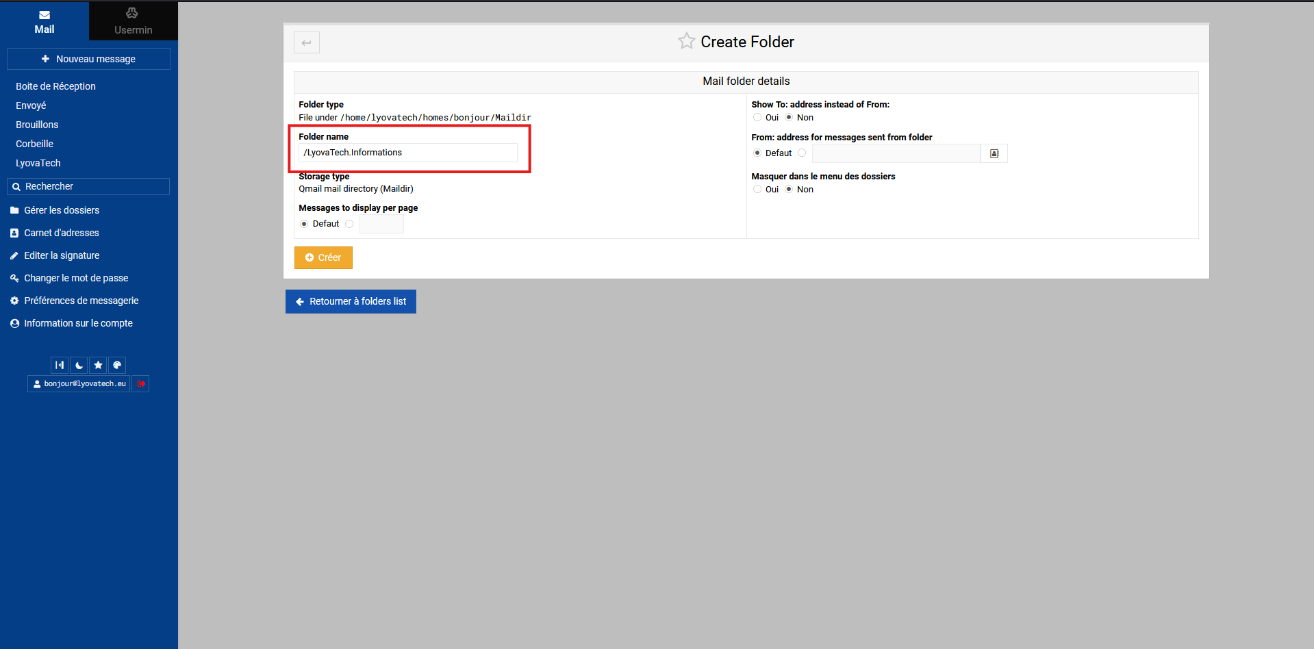 Saisissez le nom du dossier principal (dans notre exemple, "LyovaTech")